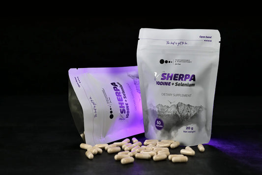 Iodine and selenium are two essential trace elements without which our bodies simply cannot function optimally. vSherpa Iodine + Selenium capsules provide both in just one daily dose: 500 mcg of iodine from natural seaweed (kelp) extract and 100 mcg of organic selenium. This carefully designed combination is key to supporting healthy thyroid function, maintaining hormonal balance, and protecting the immune system.